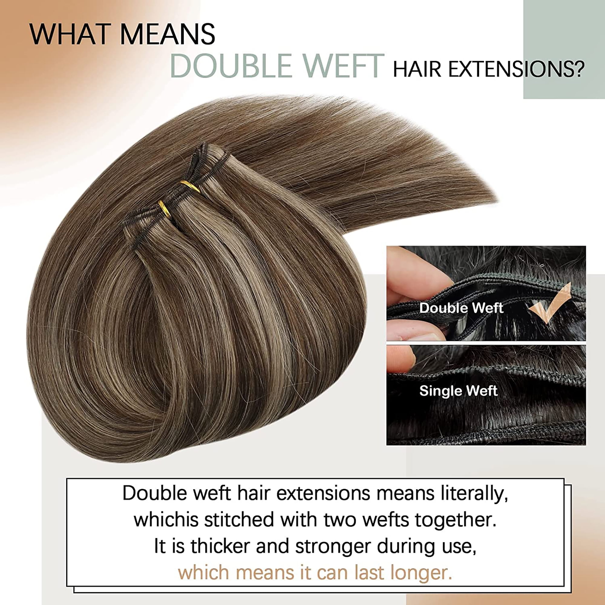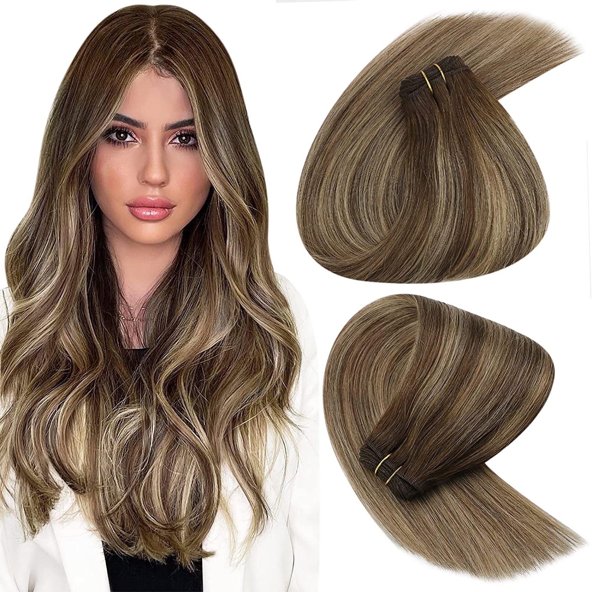 Sunny Weft Hair Extensions Sew In Human Hair 14 Inch Highlights Dark Ash Blonde And Golden Blonde Hair Straight 100g Walmart Com
