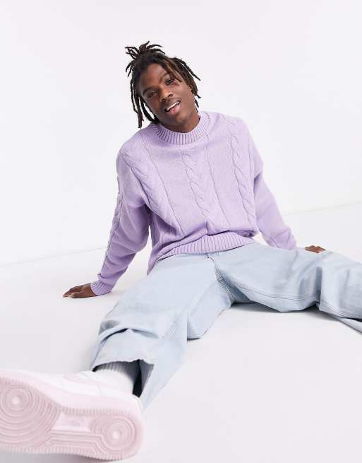 Asos Design Oversized Cable Knit Sweater In Lilac Asos